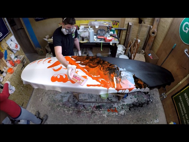 Electrofish Surfboards Glassing a Lava Resin Swirl Longboard Surfboard GoPro Resin Art Surf Craft