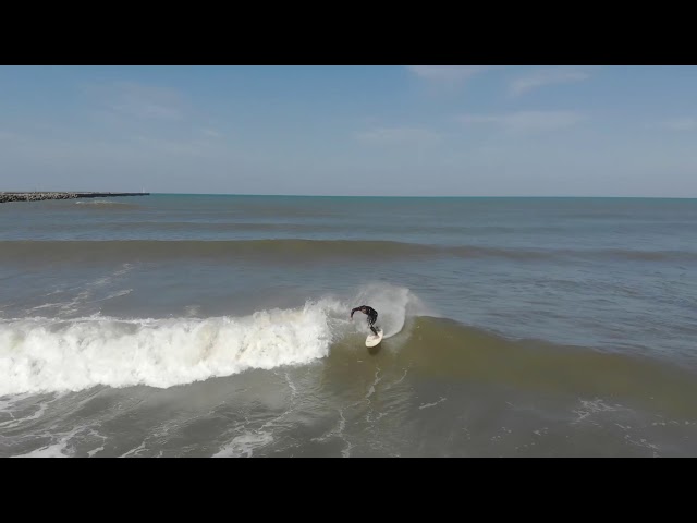 大浜でのサーフィンをドローン撮影02
