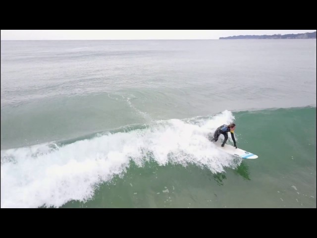 空撮 ドローン 千葉 御宿 サーフィン ビーチ ファンボード 初級者 小波 テイクオフ
