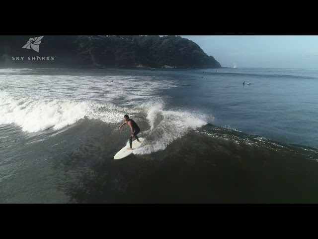 空撮、水中ロングボードサーフィン セッション 中井晴プロ