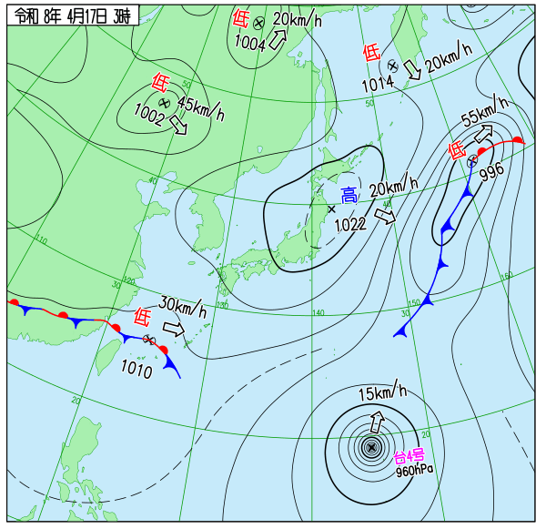 | 15 | 晴 | 8℃ | 60% | 0mm | 4.5m/s 北東 |